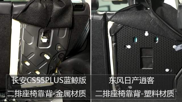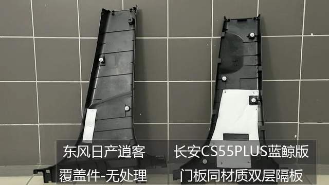 另外,在打开车辆B柱的相关覆盖件后还发现了不同。东风日产逍客没有进行任何处理,而长安CS55PLUS蓝鲸版则使用了和门板相同材质的隔板。