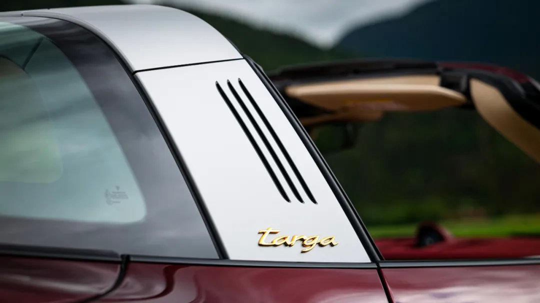 911 Targa上的这个金属银环,不仅没有破坏整车的美感,反而还赋予了这台车极强的辨识度,使人一眼就能记住它的样貌。至于“Targa”单词的释义,在意大利语中则是“盾牌”的意思,名字起得十分恰当。
