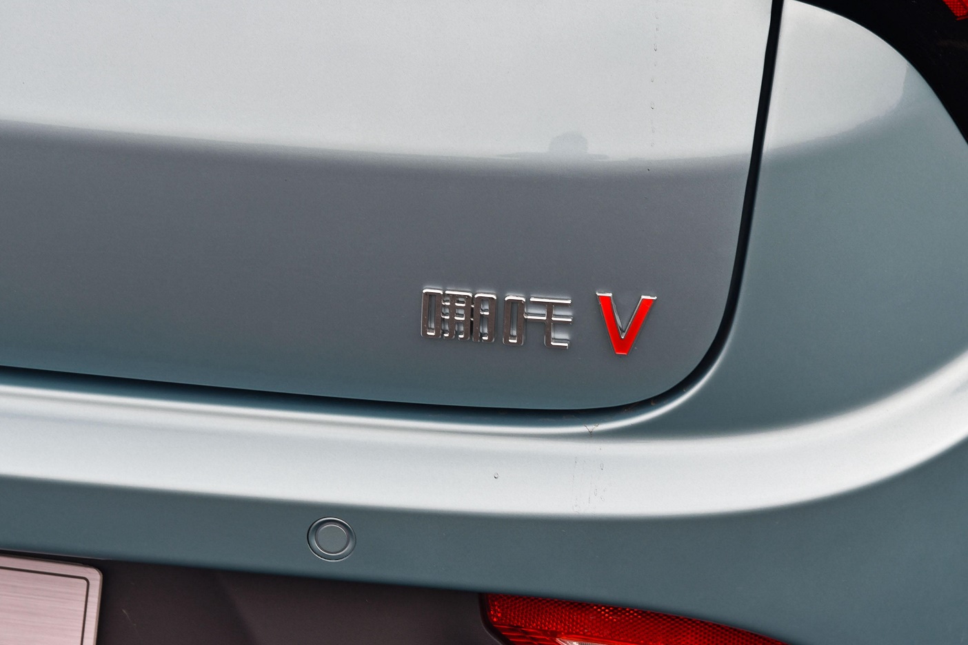 车身侧面,哪吒V采用时下较为流行的高腰线设计,腰线从头灯一直贯穿至尾灯,同时为了最大程度保证乘客头部空间。车身底部及车顶配有彩色装饰条,给人的视觉感受还是比较年轻。