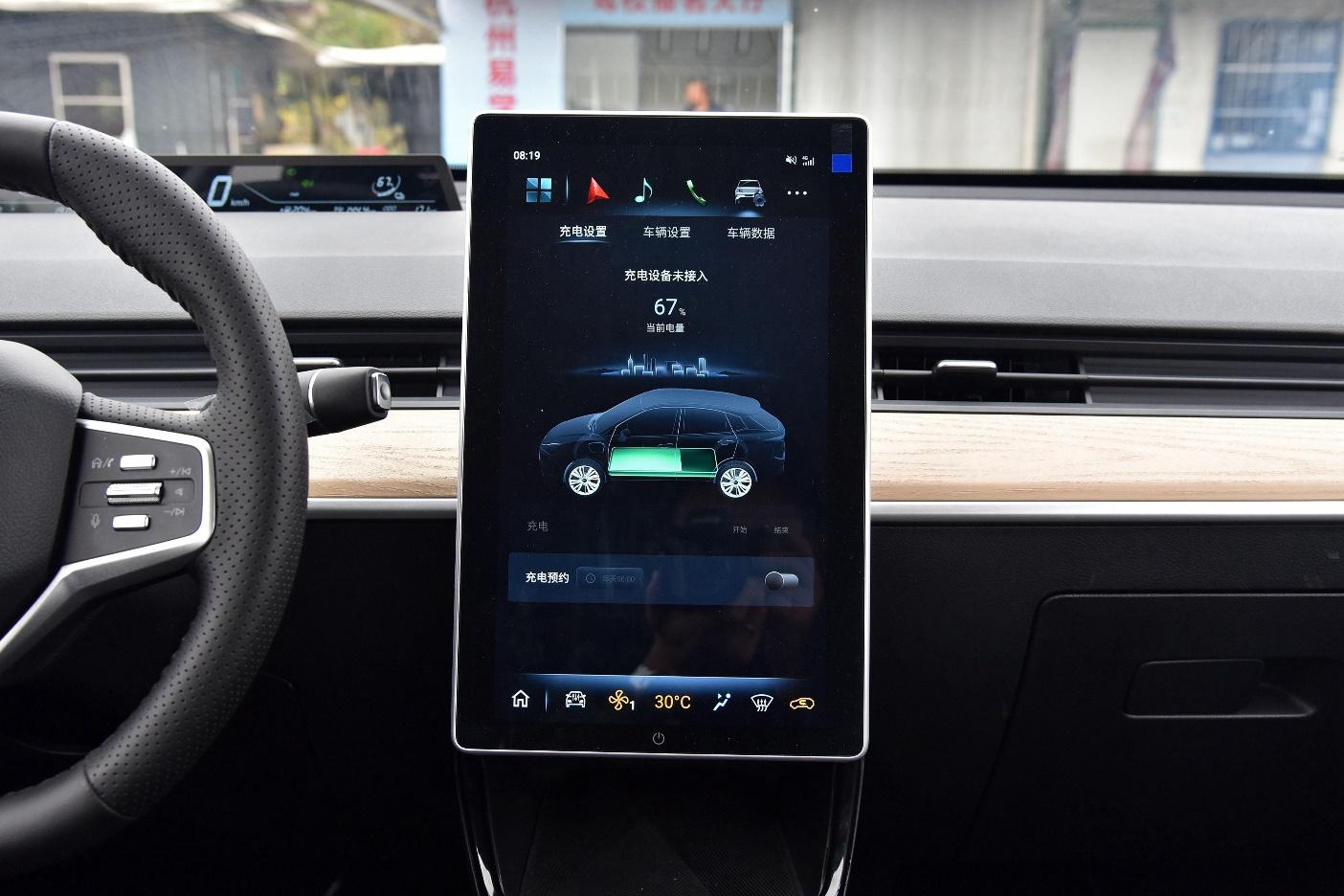 相比于目前市面上的诸多车型而言,哪吒V的内饰设计可以说极其简约,不光没有多余的装饰,同时还将车内包括车辆启动按键在内的绝大多数物理按键都取消了,所带来的的好处就是可以节约车内空间,从视觉来上看起来很开阔。