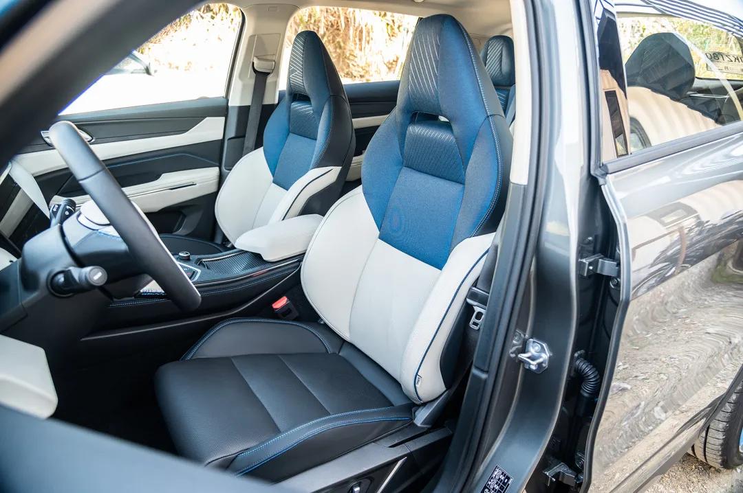 与外观一样,内饰同样有加入蓝色元素。座椅依旧是非独立头枕的一体式座椅,但坐垫两侧护翼比现款车型要软了许多,抬腿上车的时候臀部直接碾过去也不会像之前一样带来不适感。