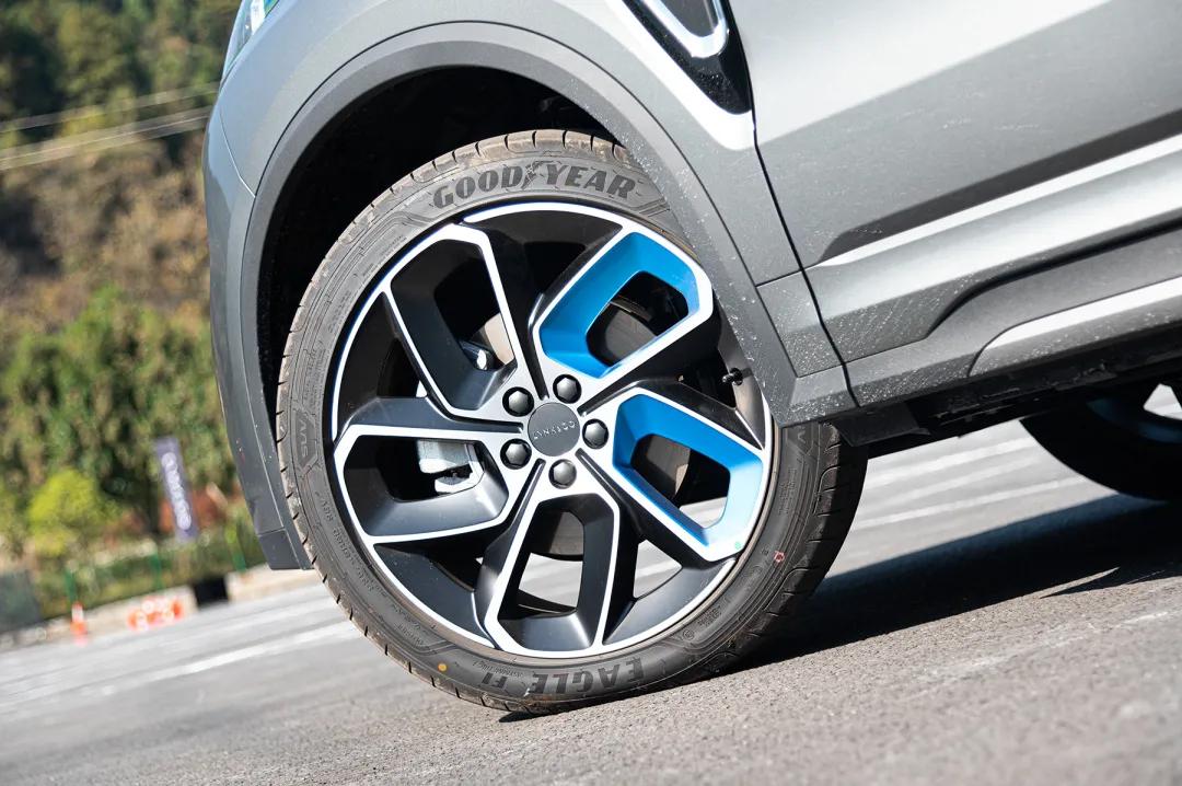 新的20英寸轮毂尺寸更大,蓝色辐条与车窗上沿的蓝色饰条对应,新款01车身色彩比之前更加丰富,也更加贴近01的目标消费群体。