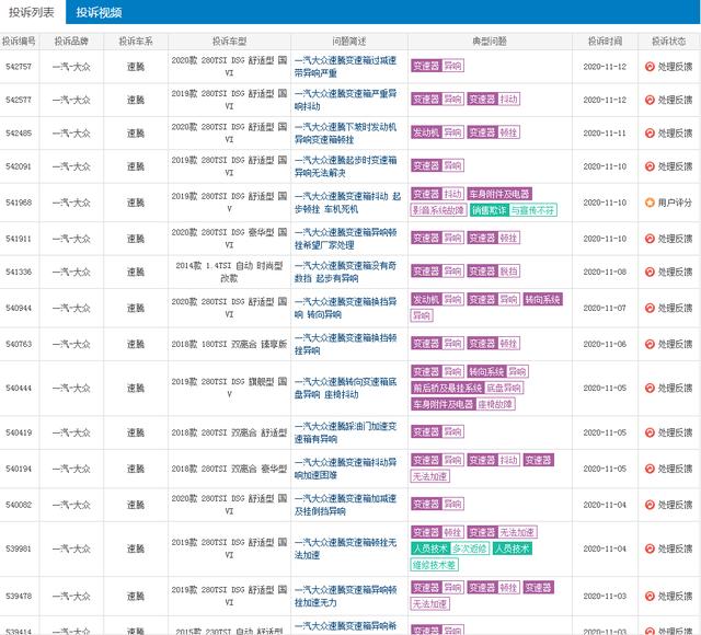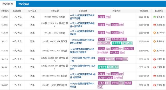 小编从车质网了解到,大众速腾变速器的问题不止存在于2019款速腾,同样的问题在2020款车型上面也有,所以也就不存在一部分网友说:这都是老款车的问题,新款已经没有这变速箱问题了。但是,数据不会骗人,存在的问题是确确实实有的,而不是凭空虚构。