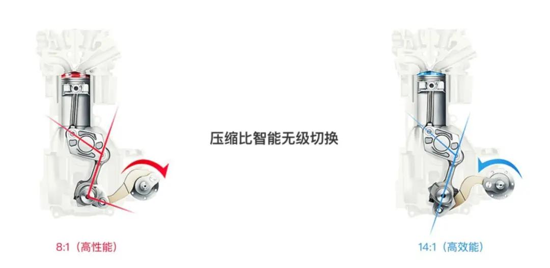 此外,VC-TURBO发动机还能实现阿特金森-奥托双循环,结合双燃油喷射系统与可变压缩比涡轮增压一起,全方位提高发动机在不同工况下的燃烧效率。