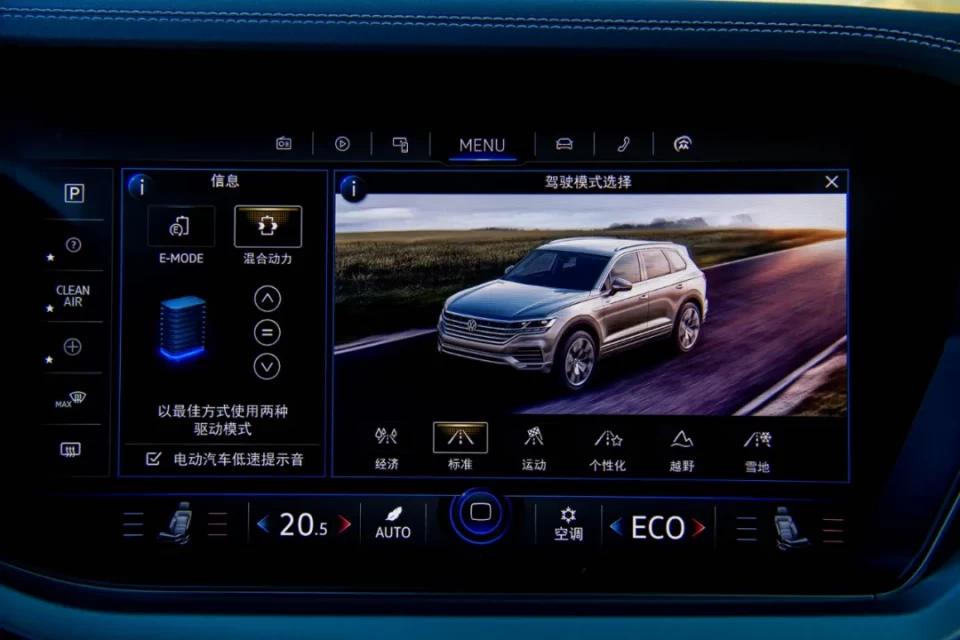实际上,体现各家车企混合动力车型差异化的关键,除了比动力性能,更重要的是拼电控系统的智能控制程度。途锐eHybrid的电能管理(e-manager)支持用户远程设定充电时间、设定停止充电阈值、监控充电进度等功能,亦可远程设定车内温度。同时,用户可通过中控屏幕设定电池电量值,低于相应阈值时,车辆会自动补充电量,进一步提升驾驶体验。
