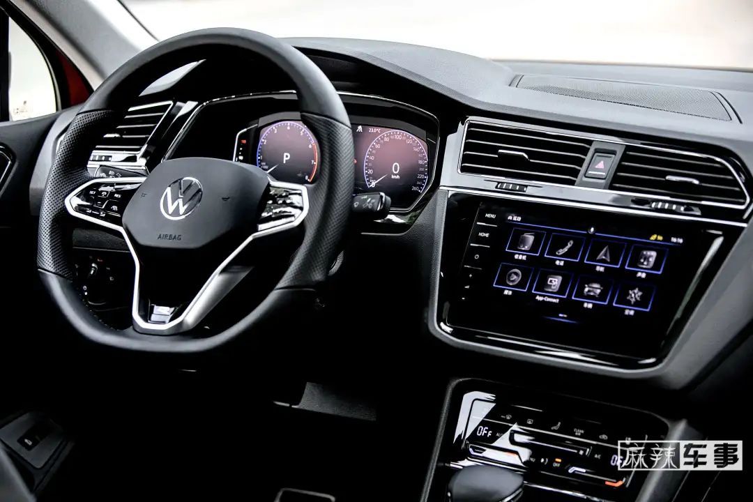内部虽然风格没变,但是数字驾驶舱带来的科技体验是老款车型完全比不上的。液晶仪表在途观X上甚至没什么值得一提的,触控微动式的方向盘和全新的车机才是重点。