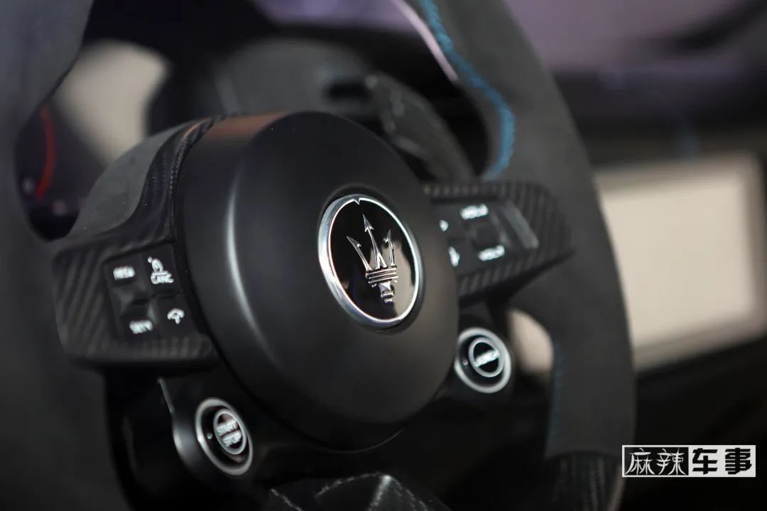 考虑到赛道表现,MC20整车座舱由单体碳纤维骨架打造,整个驾驶座舱被大面积的碳纤维和Alcantara材质包裹,整车重量不到1.5t,虽然在内饰上少了一些豪华感的营造,但对于追求驾驶体验的用户来说,它是一台非常纯粹的“赛道加速机器”。