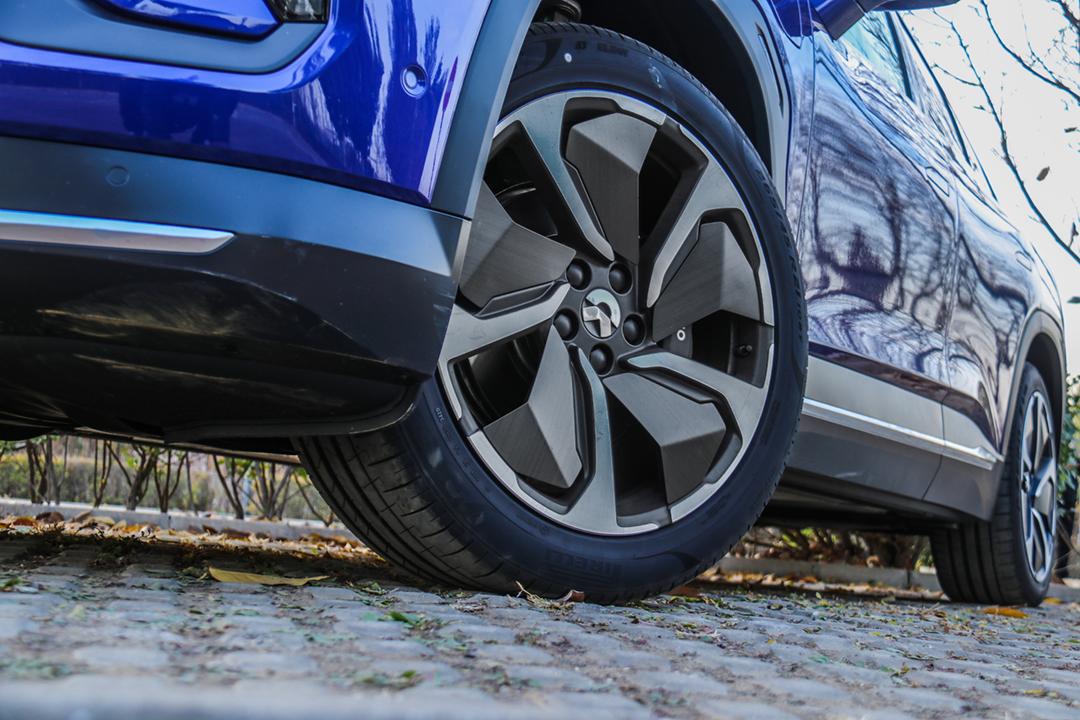 试驾车型采用了低风阻轮圈,21英寸双拼色战斧式设计时尚动感,也符合蔚来ES6本身的运动定位。