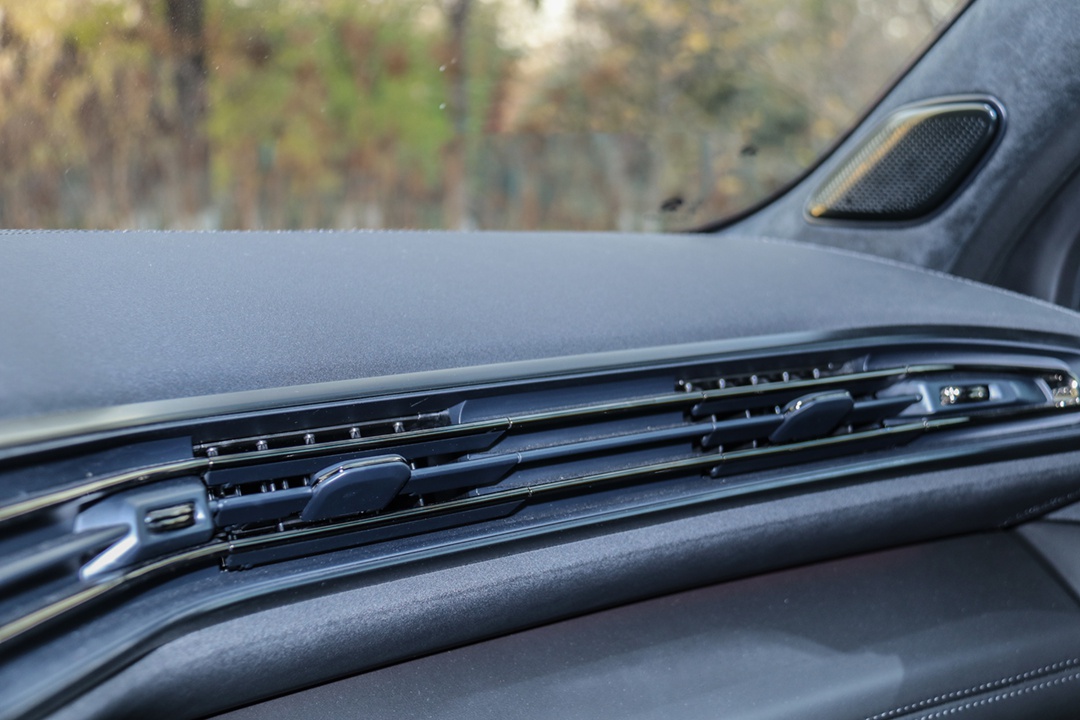 车顶采用了Microfiber超纤绒材质,在视觉效果以及触感上都与主流的Alcantara比较相似,为车内带来更强的高级感。