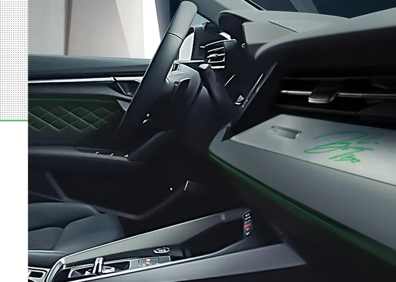 新车的尾部设计较为饱满并采用了大尺寸尾翼设计,内部还辅以绿色拉花的装饰,进一步彰显其运动性能。此外,奥迪A3王一博联名限量版的尾灯造型十分奇特,内置多点式设计,预计在夜间点亮之后将会有着不错的视觉效果。