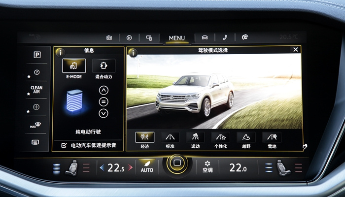 跟外观一样,其实途锐eHybrid内饰也没明显变化,唯一比较有意思的是,终于把旧款的实体按键方向盘换成了科技感更强的电容触控式。对于这种做法是可以理解的,消费群体在变得年轻,途锐也上了R-Line,再用个“油腻”的方向盘,是不是有点不合时宜?所以这带振动回馈的方向盘,我是特别喜欢的(不过方向盘的触控板有点发热)。