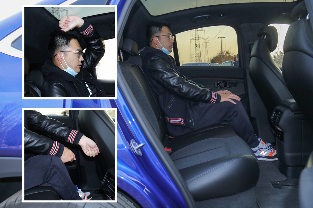 前边说到蔚来EC6的线条设计不会太过侵蚀车内空间,实际体验下来也值得点赞,175cm的我,前排调整好坐姿后,坐在后排头部有1拳的空间表现,腿部则是超过了2拳,乘坐空间表现非常充裕。作为一台轿跑SUV,蔚来EC6的空间表现要超过了我的预期。