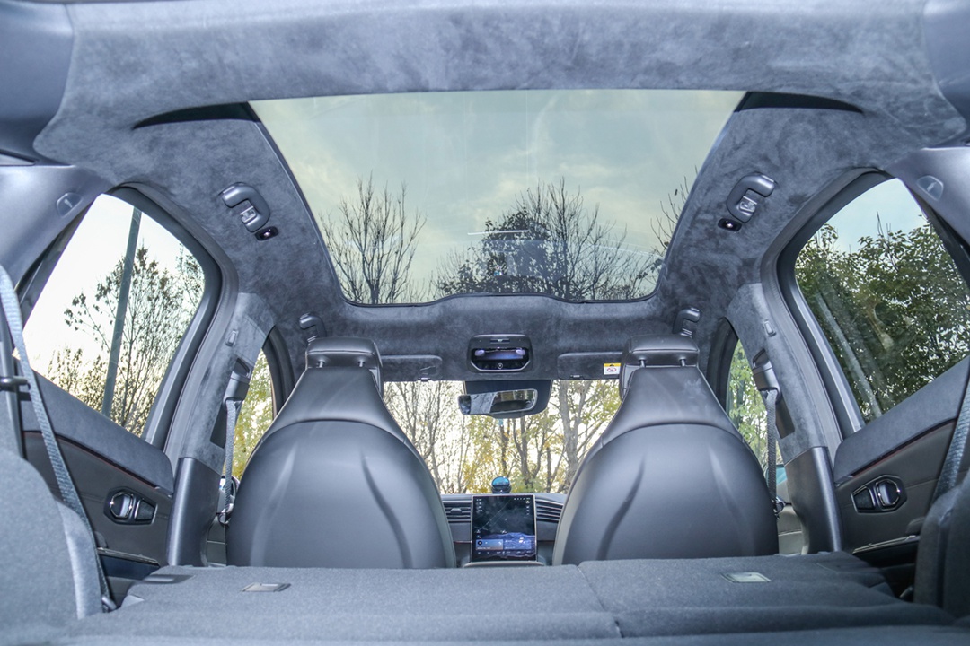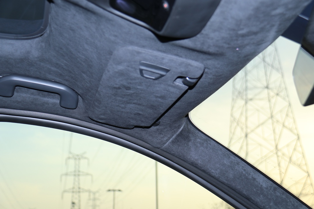 车顶采用了Microfiber超纤绒材质,在视觉效果以及触感上都与主流的Alcantara比较相似,为车内带来更强的高级感。