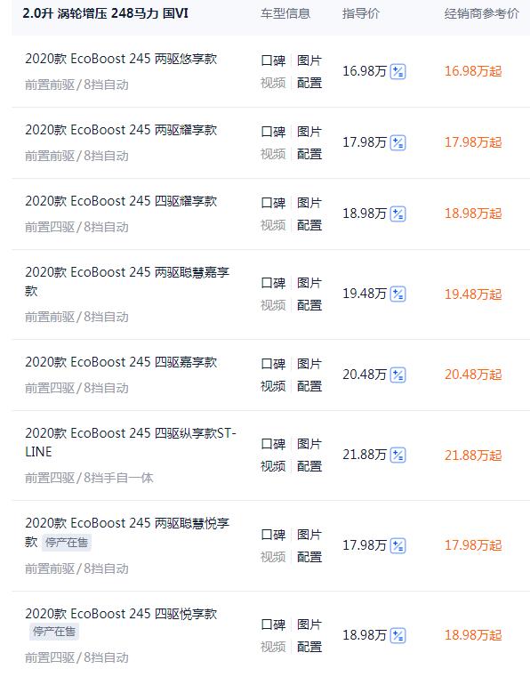 动力方面是锐际的重点,它全系搭载第四代EcoBoost®2.0升双涡流涡轮增压发动机+8挡自动\手自一体变速箱的组合,动力达到了248马力和393牛·米,在这个级别里以及价格区间内,锐际绝对是动力最有优势的车型之一,而且中高配车型就有四驱系统,售价还不到20万元。