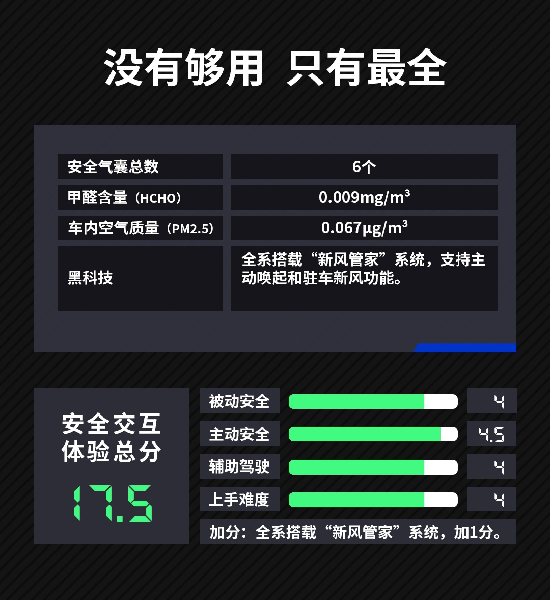 空气安全方面,林肯冒险家在保证视觉效果和触感的同时也将空气安全尽可能地照顾,车内并无明显异味。基于中国消费者对空气质量严苛的要求,全系搭载“新风管家”系统,将车内空气检测与空气清洁相结合,并支持主动唤起和驻车新风功能,大幅提升空气安全。