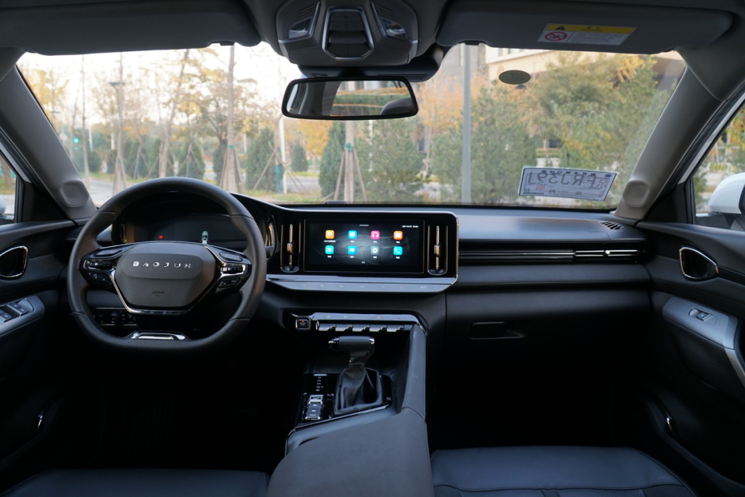 内饰的设计倒是很有新意,环抱式的座舱,搭配两块不相连的显示屏,整体的视觉效果是偏豪华的,而且多处采用了黑色亮塑料,有效的扭转了之前对宝骏那种内饰廉价的印象。悬浮式的平底方向盘观感和握感都很好,只是转向助力机械感偏强,精准的像是卡丁车。大屏幕手感顺滑,但使用逻辑不熟悉的话前期不太容易上手。类似于游艇样式的机械档杆很有战斗气息,力度和反馈都很清晰。