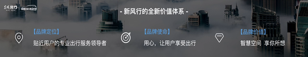 新风行的全新价值体系涵盖品牌定位、品牌使命、以及品牌价值三个方面,致力成为贴近用户的专业出行服务领导者,用心让用户享受出行,智慧空间,享你所想,坚持以使用大空间作为品牌第一印记。