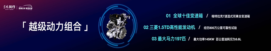 动力部分,新车搭载1.5TD发动机,最大功率197马力,传动匹配7速湿式双离合变速箱,百公里油耗为6.6L。