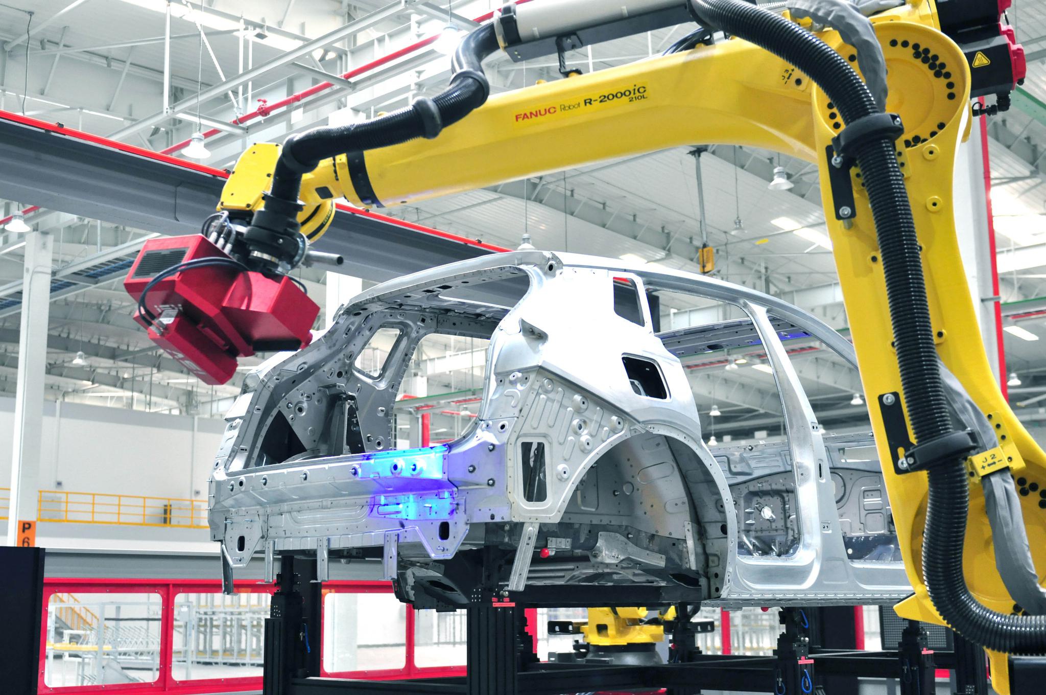 机器人激光在线检测系统同样拥有高达±0.3mm的测量精度,可实时监控生产线上的车身尺寸状态;而涂胶视觉在线监测系统则能够有效保证车身涂胶质量,实时与标准涂胶模板进行比对检测。