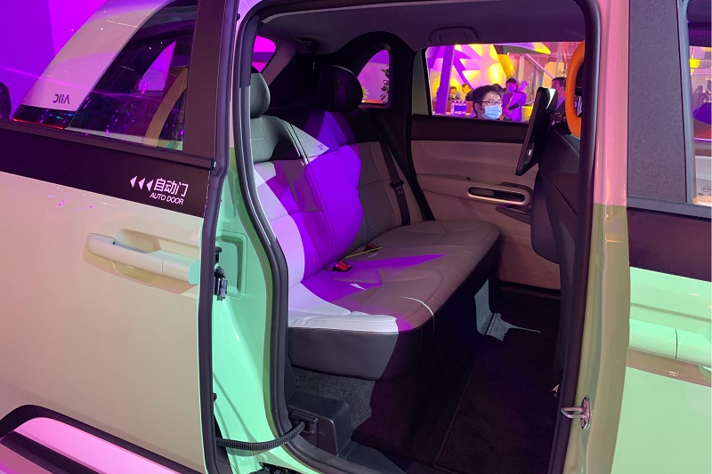 车身侧面,新车采用了潮流的双色车身设计,整体看上去十分年轻。下方轮圈造型别致,花瓣式的设计极具辨识度。值得一提的是,新车采用了不对称式车门设计,右后车门为侧滑式,能够方便乘客上下车,而左侧则沿用了传统的车门开启方式。在车身尺寸方面,新车的长宽高分别为4390/1850/1650mm,轴距为2800mm。