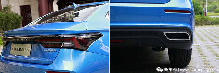 车尾部分,大灯采用了贯穿式设计,利用灯壳的效果去强调奇瑞英文标,有利于车尾在视觉上有更好的宽体感,同时提升了档次感。同时改善了老款车型上内凹的设计,让整个车尾看上去更舒展,新车的车尾仍然保留了小尾翼的效果,让车尾看上去动感一些。尾灯组进行了轻度的熏黑,我个人感觉让大灯的内部层次不太明显了。