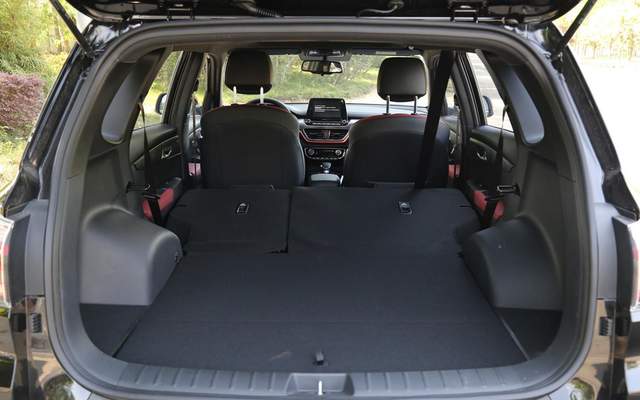 空间表现不错,主流的紧凑型SUV水平,不过中间地台隆起比较高,如果是乘坐三人的话,中间乘客可能会有些憋屈。后备厢表现中规中矩,下沉式设计让后备厢的内部相对更规整一些,但是放倒第二排之后就会形成一个明显的台阶,这里是有一些落伍的,表现不够主流。