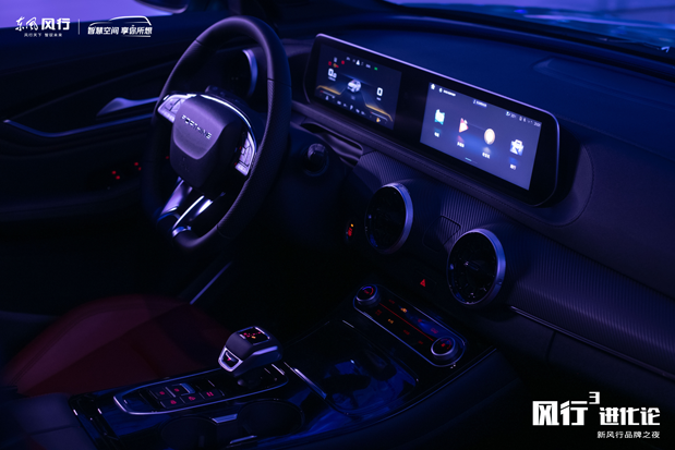 全液晶仪表和中控屏采用悬浮式双联屏设计,内置风行最新车机系统,由腾讯智慧出行研发,整合腾讯旗下优质资源,除常规的多媒体、收音机、导航等功能外,该系统提供车载微信应用,方便用户在车机使用微信;同时具有近60项智能管家功能,打造“体贴懂你”的车内空间,因此官方将智慧出行作为新车的一大卖点。