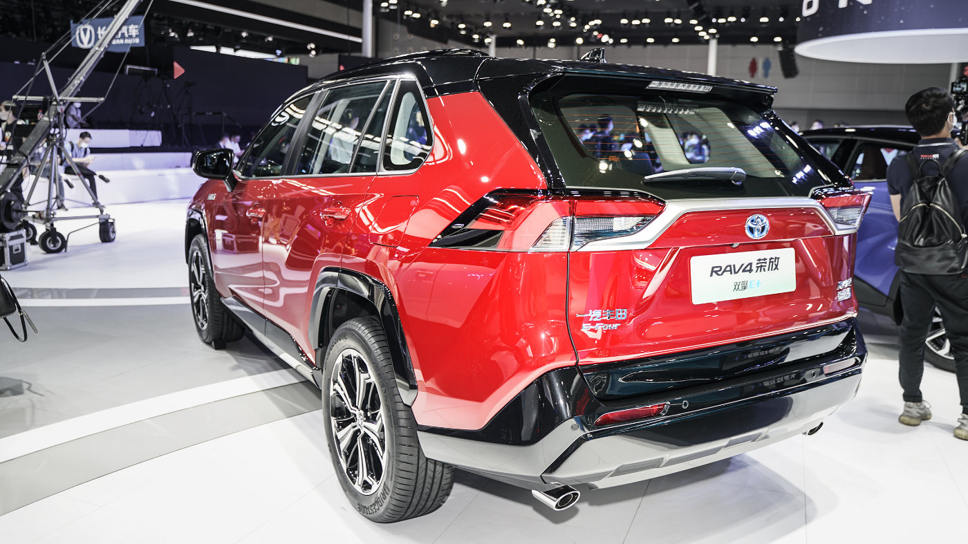 相比之下,RAV4双擎E+在外观方面的变化就比较小了,整车依旧是比较硬朗野性的设计风格,并且也同样主打黑红配色。