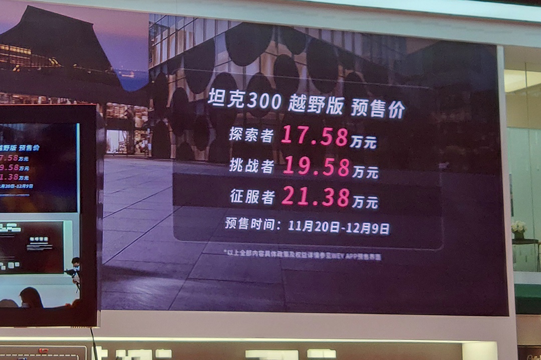 11月20日,2020广州车展盛大开幕,在车展现场,WEY品牌旗下的首款硬派越野车——坦克300 (配置|询价)正式开启了预售。本次预售的车型为搭载2.0T发动机的版本,其预售价格为17.58万-21.38万元。新车定位于一台紧凑型SUV,基于坦克·WEY越野平台打造而来,整体造型十分硬朗。
