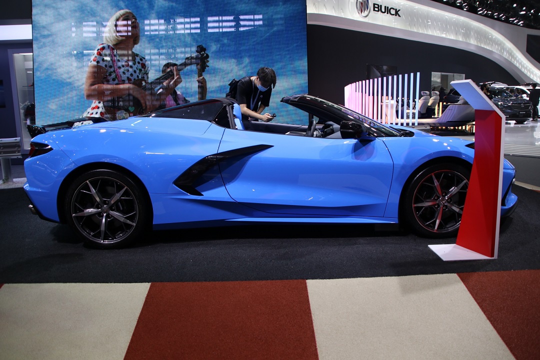 11月20日,2020广州车展盛大开幕,在车展现场,有车智联前方团队拍摄到了一组克尔维特 C8的实车图片,新车采用了最新的家族设计语言,外观与动力都有不小的提升。此外,车顶可在速度不超48公里/小时下收放,并且只用时16秒就可以完成整个过程。