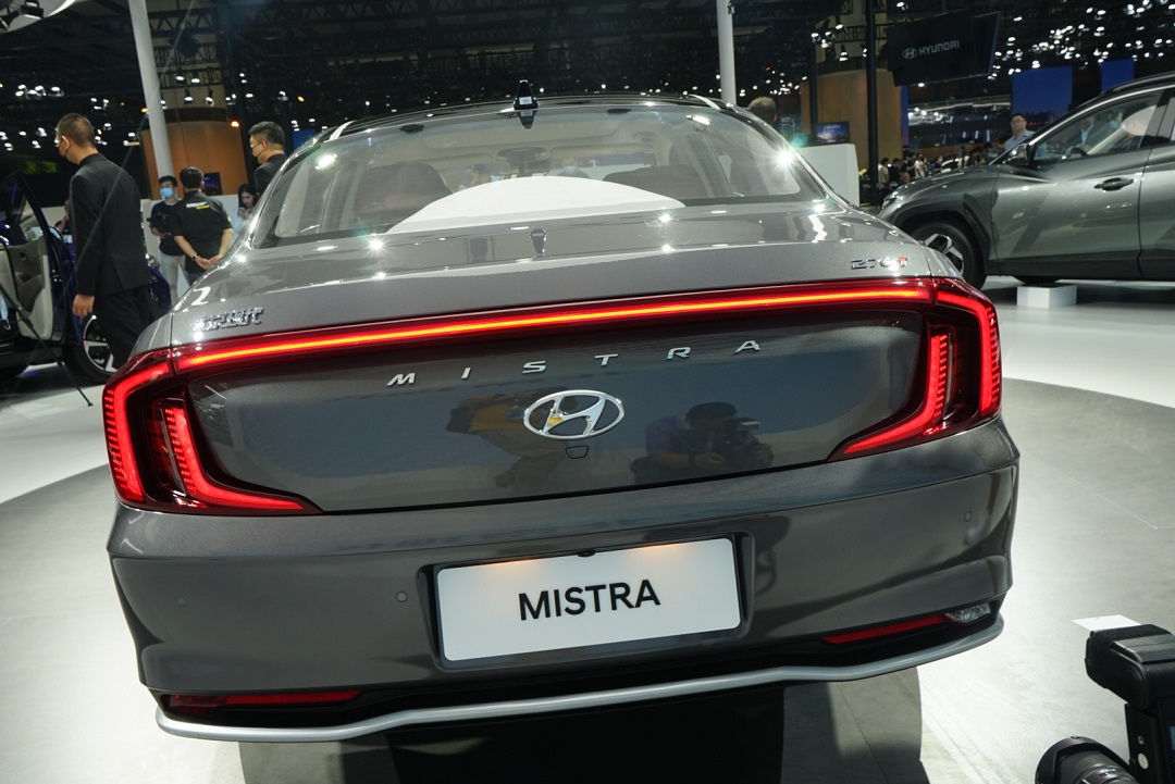 新车尾部的造型与全新索纳塔 (配置|询价)十分相似,同时配备了贯穿式尾灯带,颇具动感,“L”型的灯带配合贯穿式的刹车灯使车尾更加立体且富有科技感。同时,现代的标志镶嵌在尾箱的中央,上方印有名图的英文字母,使车尾更富有层次感。此外,下方设计有同样采用贯穿式的黑色饰板,配合银色的转饰条使车尾更加典雅气派。