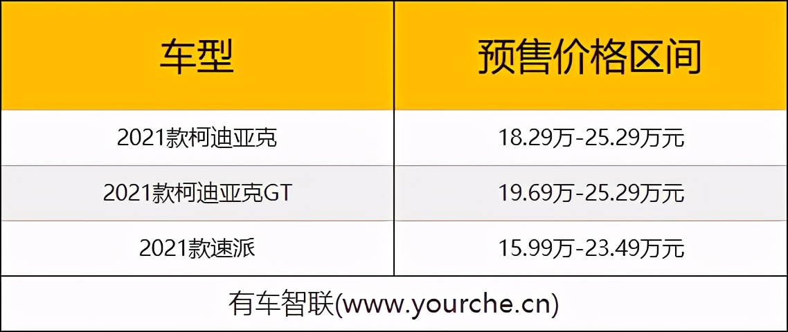 11月20日,2020广州车展盛大开幕。在车展现场,斯柯达品牌旗下的三款车型:2021款柯迪亚克 (配置|询价)、2021款柯迪亚克GT (配置|询价)以及2021款速派 (配置|询价)进行了正式亮相并开启预售。2021款柯迪亚克的预售价格区间为18.29万-25.29万元;2021款柯迪亚克GT的预售价格区间为19.69万-25.29万元;2021款速派的预售价格区间为15.99万-23.49万元。作为年度改款车型,三款新车最大的亮点是搭载了斯柯达智慧车联系统,拥有了更丰富的移动互联功能。