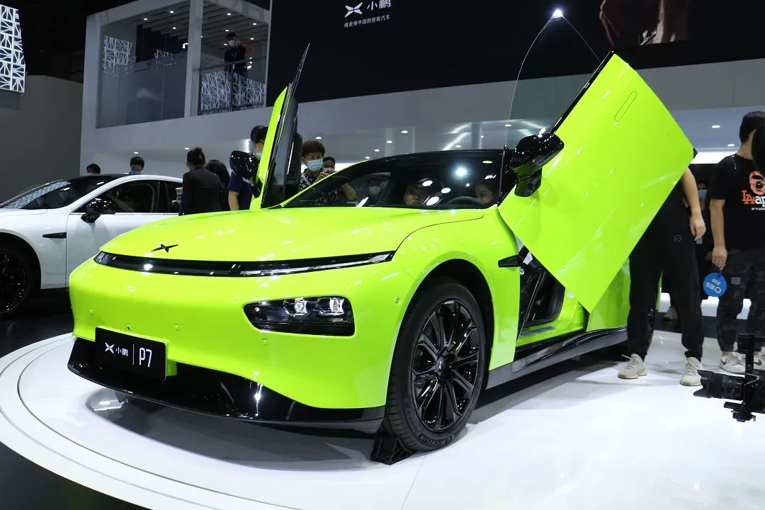 在小鹏汽车展台,小鹏P7鹏翼版正式上市,新车共推出两款车型,官方指导售价区为售价36.69万-40.99万元。新车采用了特殊的剪刀门设计,并换装了全新荧光绿色车漆,整车外观极具个性。