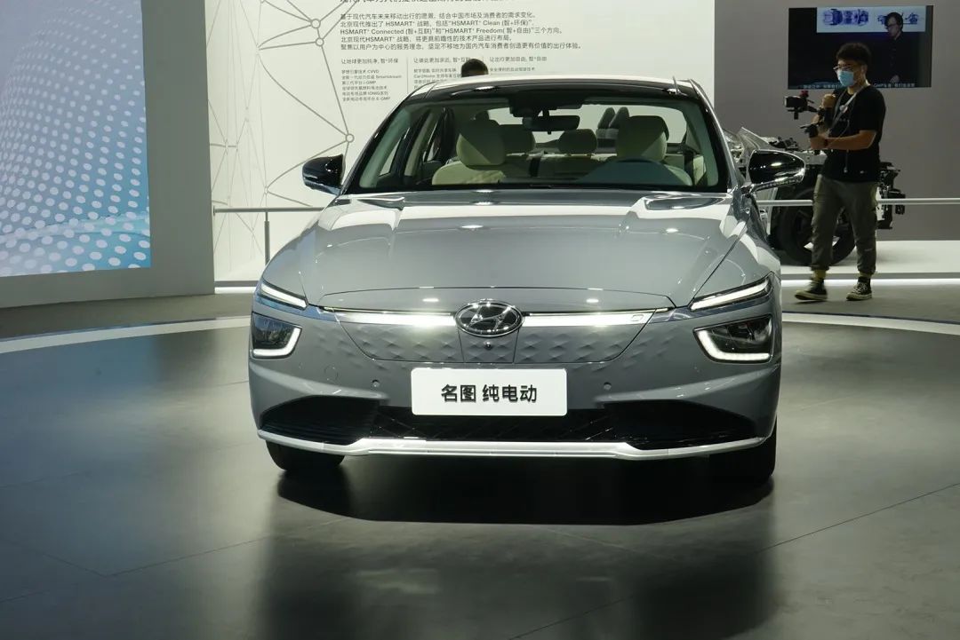 在北京现代展台,全新名图纯电动版车型正式亮相,据了解,新车将在明年下半年正式上市。该车搭载了一台永磁同步电机,同时NEDC续航里程可达520km。在外形轮廓上,新车与燃油版的全新名图保持高度一致。