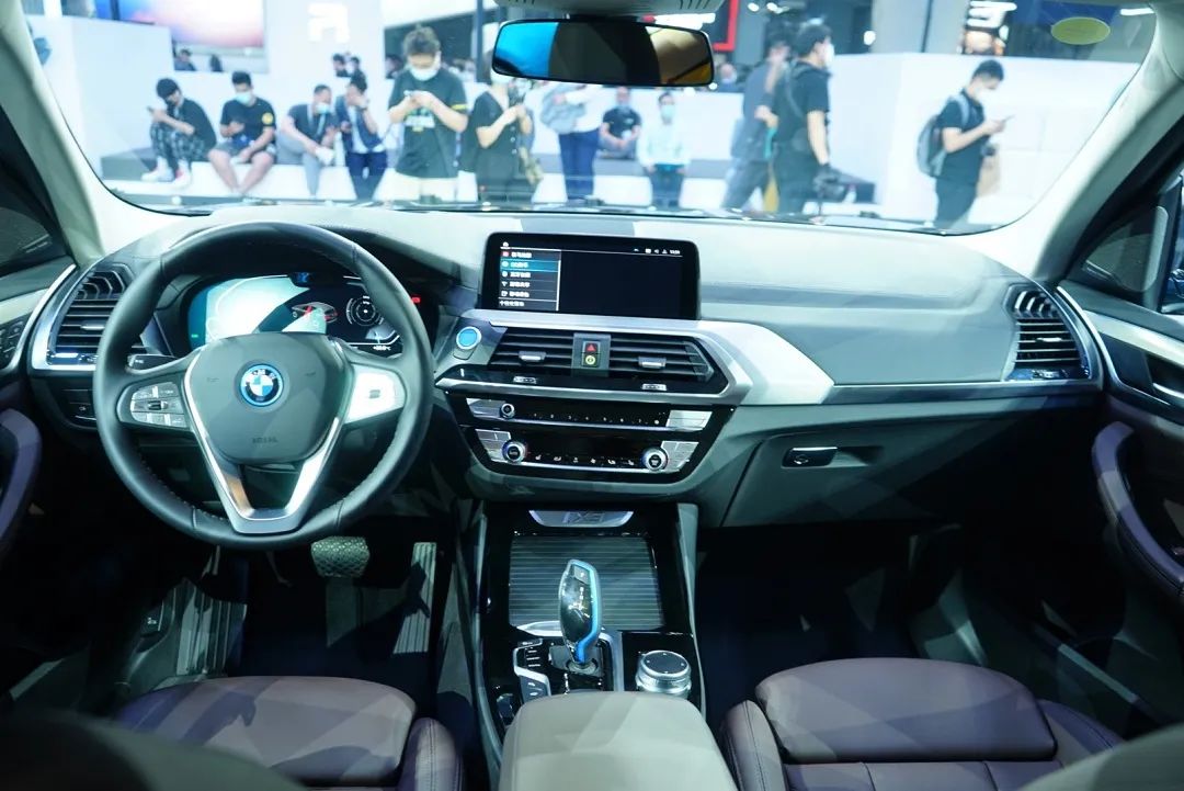 内饰方面,中控台布局延续了燃油版X3的设计,但在方向盘上车标的外圈、挡杆的轮廓、启动按钮和仪表盘的底色,都有蓝色的点缀。在配置上,全液晶仪表、iDrive 7.0人机交互系统、无线CarPlay、360度全景影像、自动驾驶辅助系统Pro、前排座椅加热/电动调节、自动空调等均为标配。