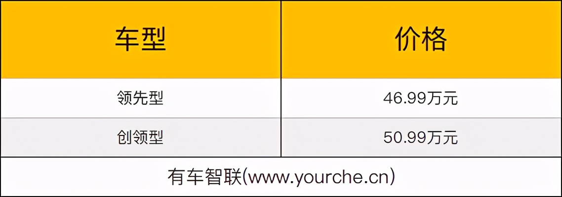 官方指导售价区间:46.99万-50.99万元