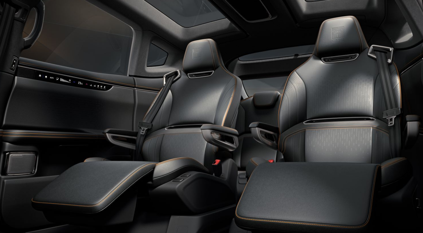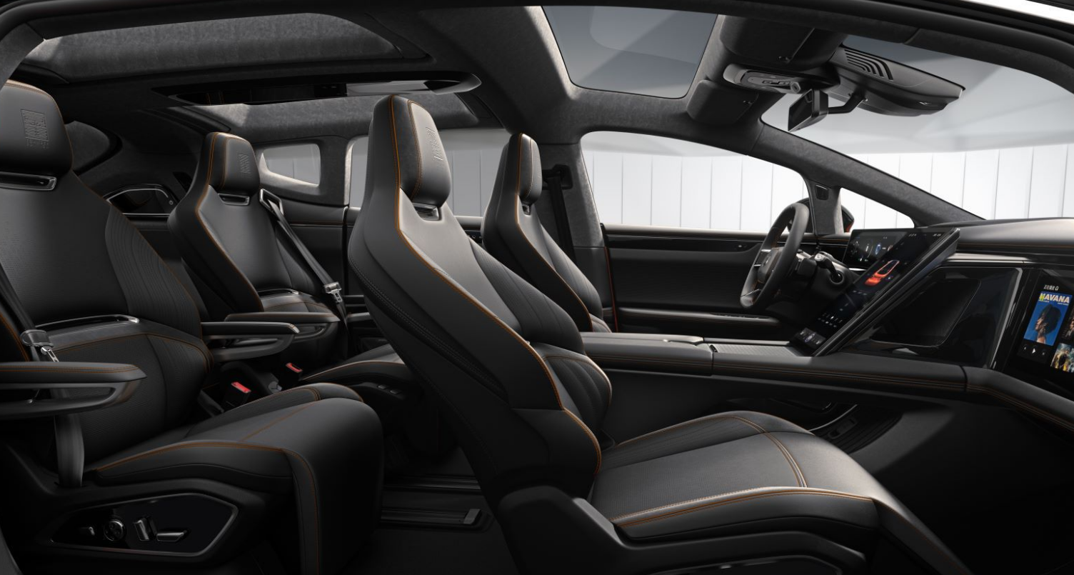 高合HiPhi X采用了非对称式的座椅布局与全液晶化的智能交互界面。配备3块大尺寸液晶屏幕,分别为14.6英寸全液晶仪表、16.9英寸中央触控屏及19.9英寸副驾娱乐显示屏,真皮包裹的多功能运动方向盘,方向盘上配备两块TouchPad触控板,可以便捷操控,通过方向盘上的拨片对驾驶模式或能量回收等级进行切换。全车将采用植鞣半苯胺真皮,比Nappa真皮更为高端奢华。
