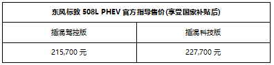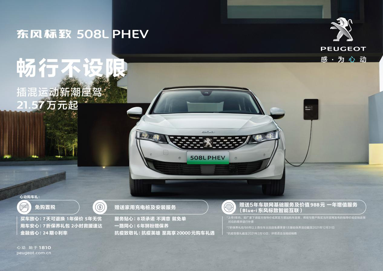 2020年11月20日,东风标致在广州车展举行新闻发布会隆重举行。东风标致全新4008和全新5008进行了中国首秀,并将于2021上半年面市,同时插混运动新潮座驾508L PHEV正式上市,官方指导售价为人民币215,700-227,700元。