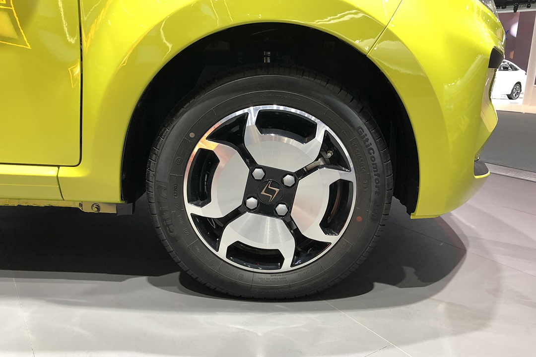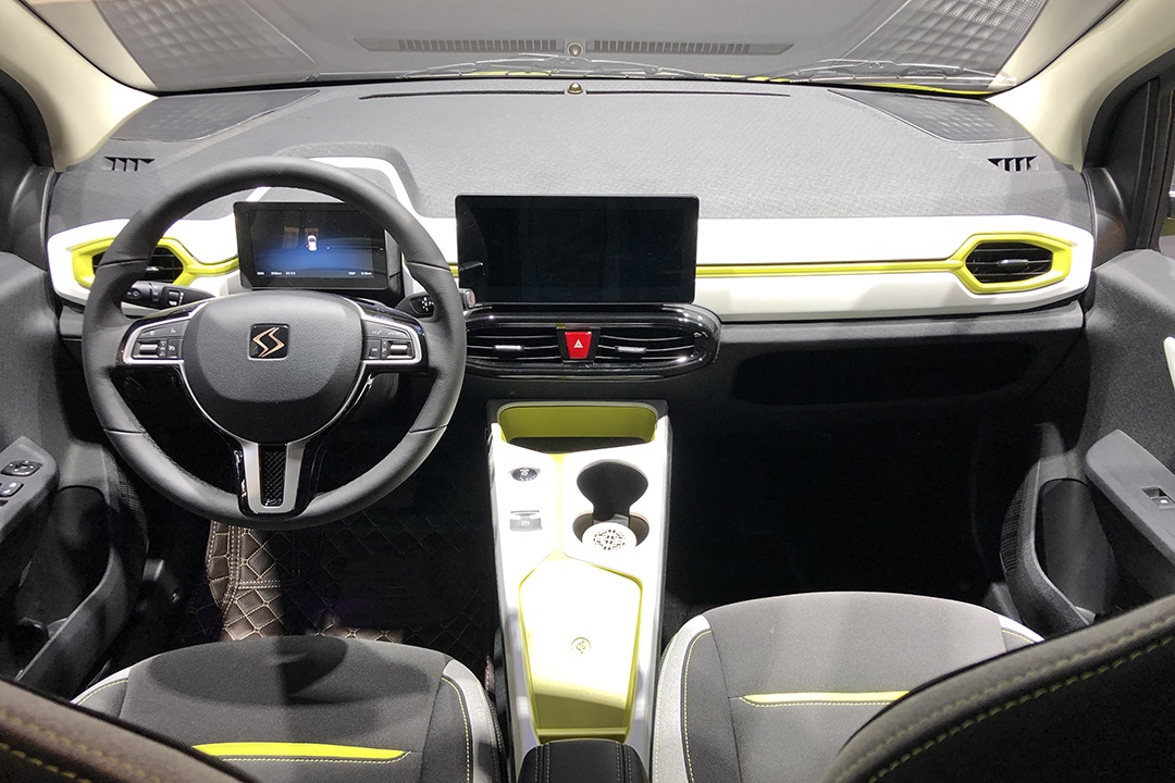 在车身尺寸方面,思皓E10X的长宽高分别为3775/1685/1570mm,轴距为 2390mm,定位于一款微型纯电小车,黑黄双色车身以及造型动感的轮圈为它增添了不少可爱和时尚气息。