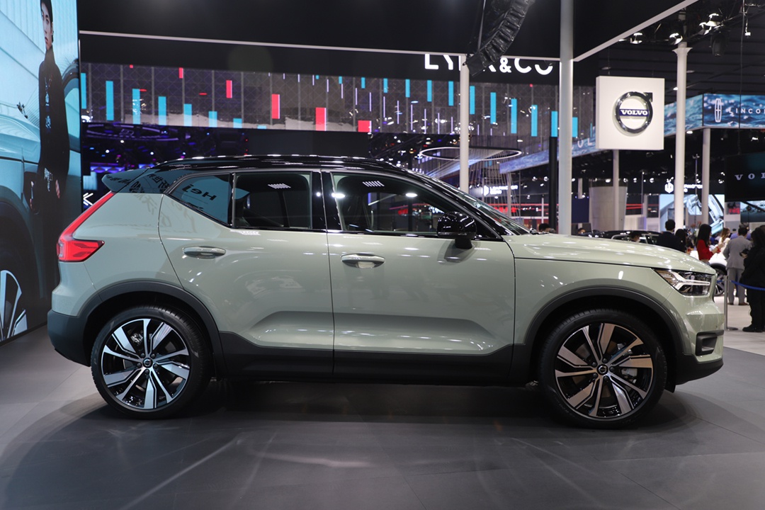 车身侧面,新车采用了悬浮式车顶的设计,看起来更加时尚。同时,沃尔沃XC40 RECHARGE的腰线设计使新车看起来更具立体感。此外,多辐式轮圈的造型搭配黑色的轮眉看起来更加动感。