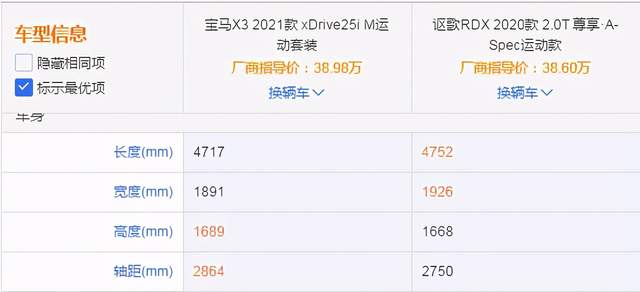 车身尺寸方面:宝马X3与讴歌RDX相差不大