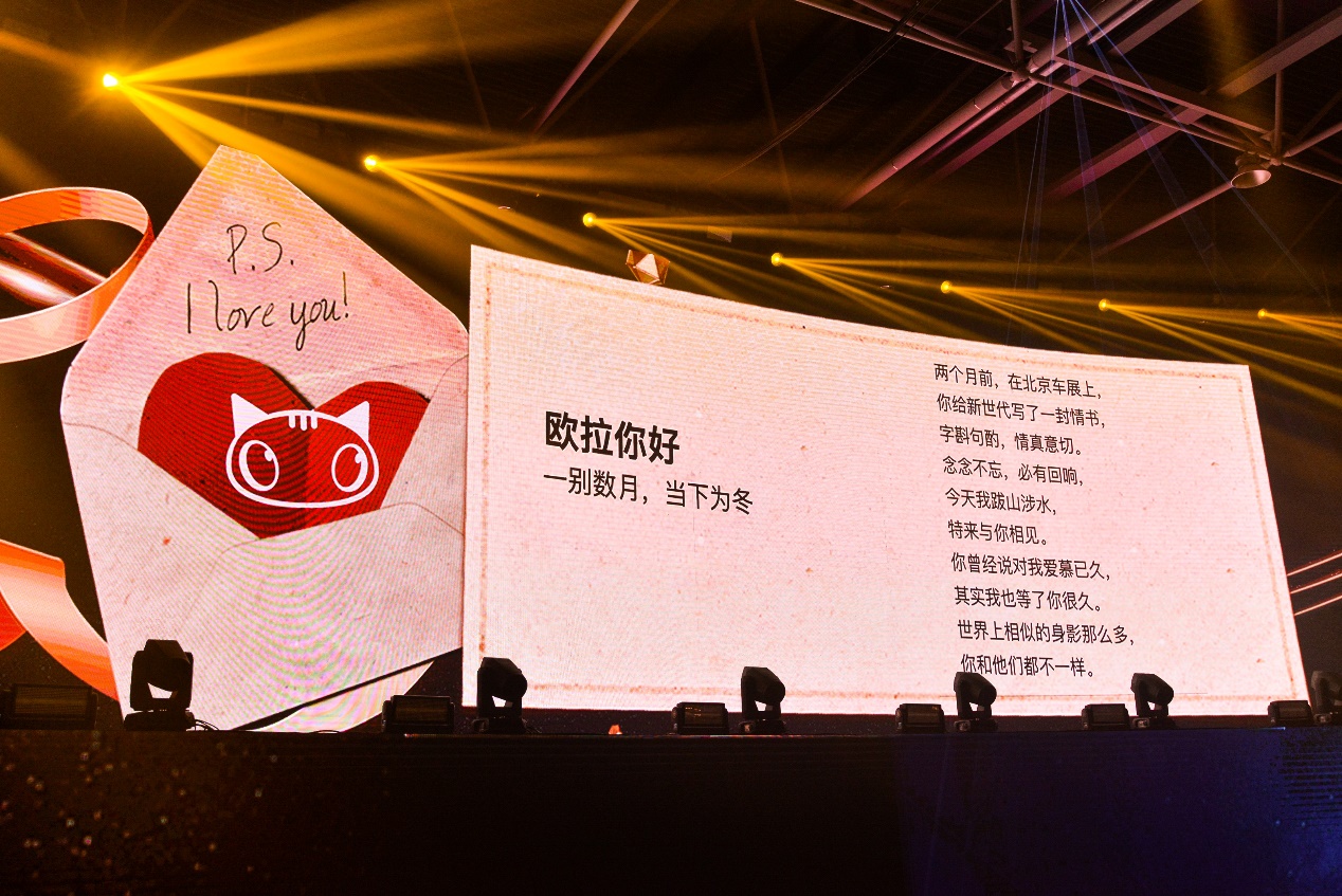 开场便公布价格算是“打了台下观众一个措手不及”,不过精彩并没有结束。上文也说了,欧拉好猫的上市发布会现场并没有主持人掌控节奏,车企的各位领导也没有登台致辞,全程只有长城汽车股份有限公司商品战略部部长吴会肖以一首诗的形式进行了“产品讲解”。我认为这首给欧拉好猫的诗足以让人身临其境,真正的把欧拉好猫的产品理念传送给了消费者。