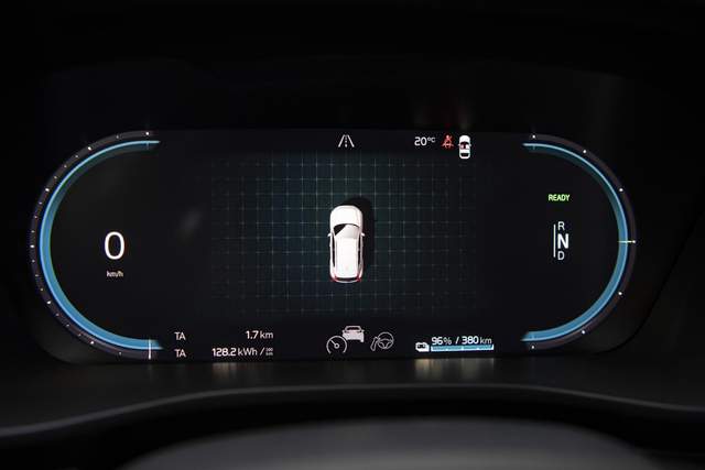 液晶仪表尺寸仍为12.3英寸,不过UI设计针对电动车特点进行了调整,两侧表盘的存在感弱化,同时功能性有所提升。并拥有三种模式,可以将地图导航或驾驶辅助信息显示在中心区域。
