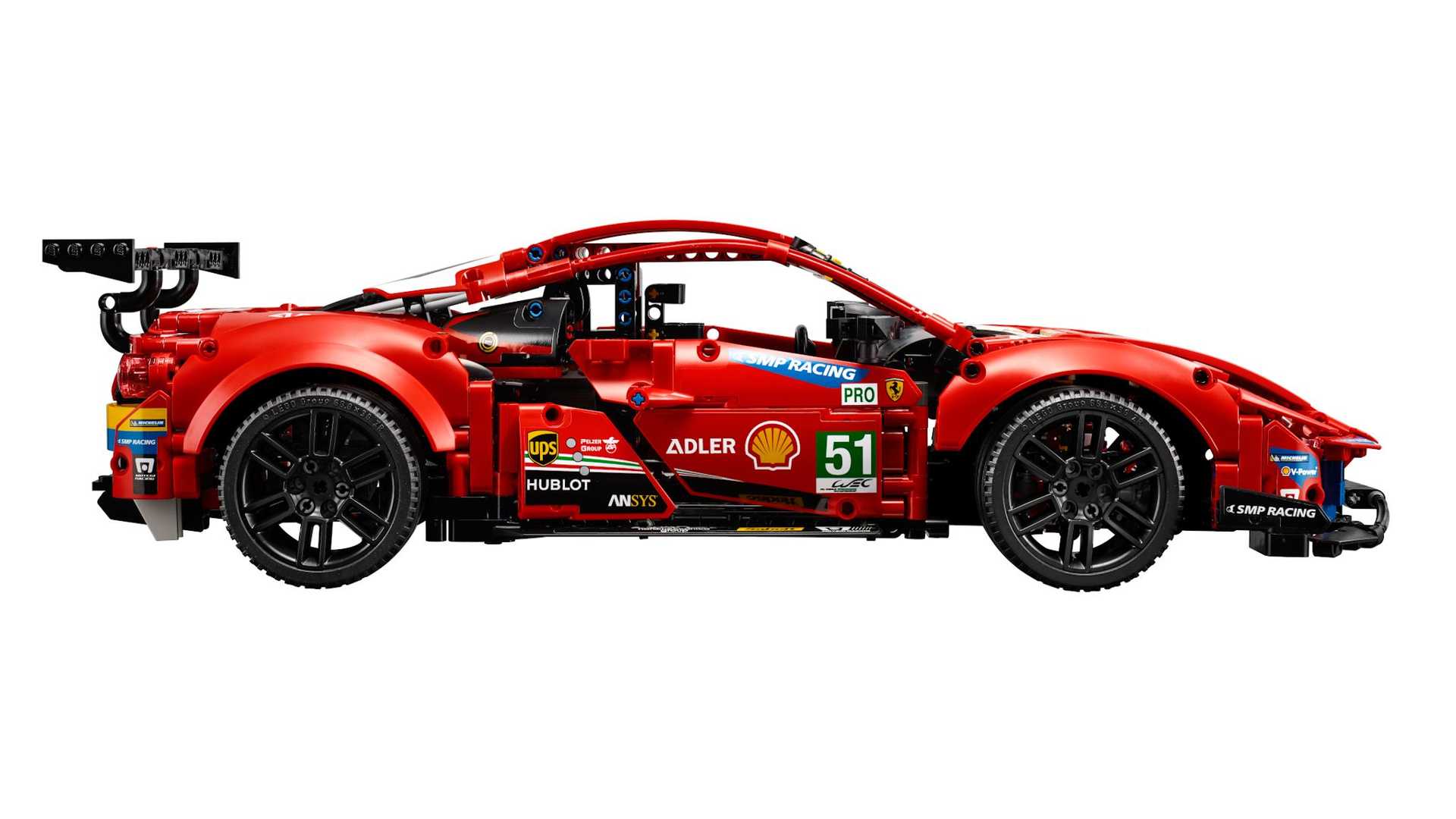新的Technic延续了乐高和法拉利15年的合作关系,不过这是第一款与汽车制造商合作设计的法拉利Technic部件。这种紧密合作的成果在汽车的细节上体现得淋漓尽致,该部件出色地再现了488 GTE的曲线美学。虽然Technic的复杂性较高,但用砖块砌成的积木很难做到这一点,该车拥有空气动力学套件、巨大的尾翼、赞助商贴纸和标志性的三色涂装方案。
