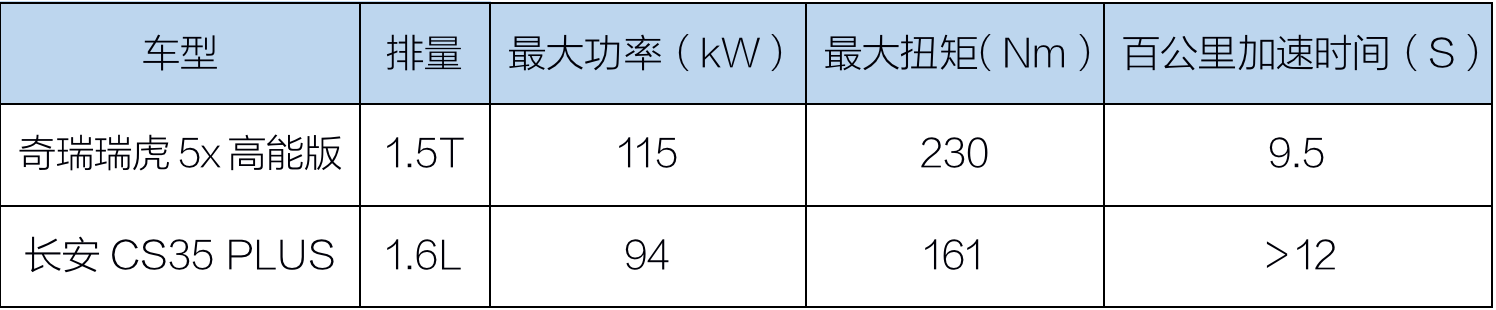 从表中不难看出,瑞虎5x高能版在动力参数和加速能力上都远远优于CS35 PLUS,虽然CS35 PLUS也在今年推出了搭载1.4T发动机的蓝鲸版,但在终端售价上还是要比瑞虎5x高能版高出一截。