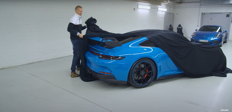 近日,我们从外媒渠道获取到一组全新保时捷911GT3车型的实车图片,新车是在著名汽车类节目Top Gear中被曝光,视频中保时捷官方工作人员向主持人展示了全新911 GT3的头部和尾部造型。