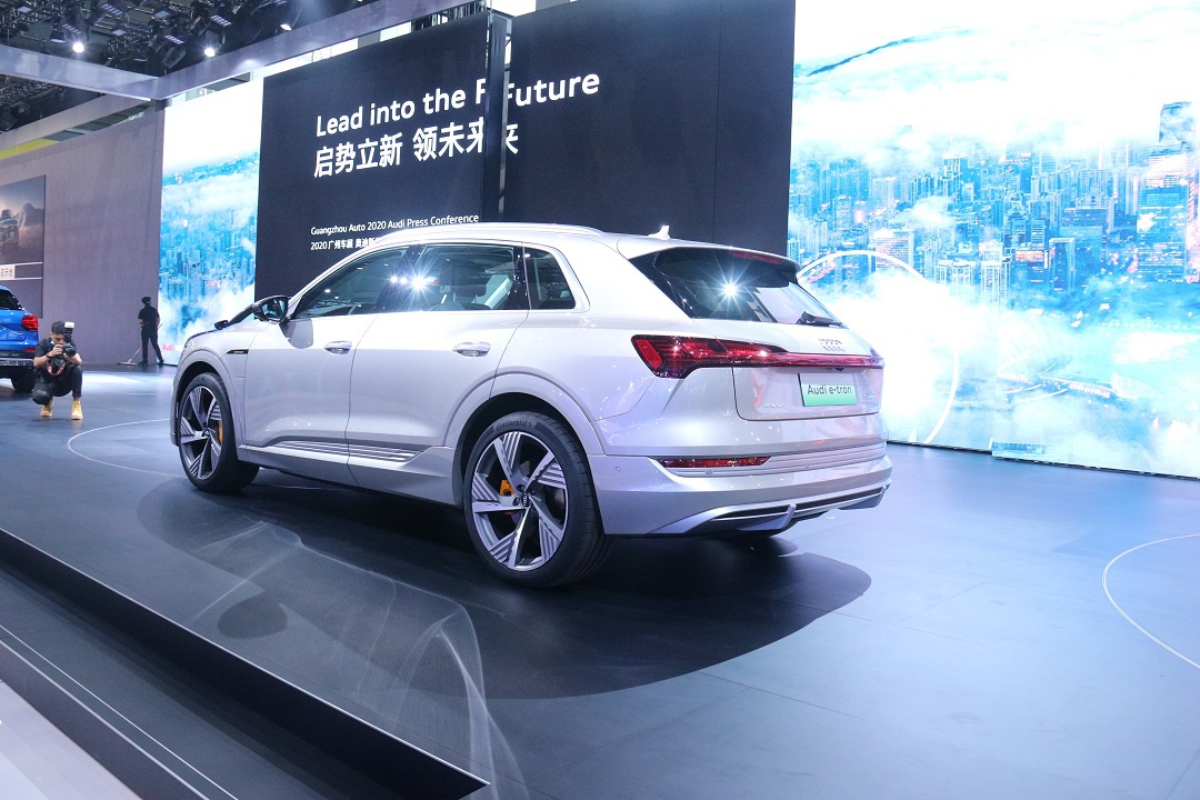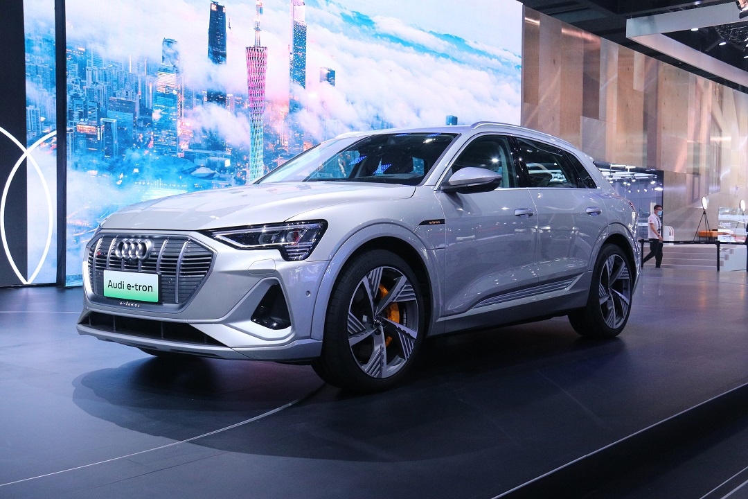 奥迪e-tron是奥迪旗下的首款中大型纯电动SUV,新车已于去年正式上市,不过由于进口的原因,其偏高的售价也让不少消费者望而却步,而在这次广州车展上,一汽-大众为我们带来了奥迪e-tron的国产版本,这也意味着新车的售价将变得更加亲民,其市场竞争力将大幅提升。首先在外观造型方面,新车与在售的进口版本车型保持高度一致,标志性的半封闭式前格栅采用八边形设计,搭配矩阵式LED大灯,彰显霸气的同时还透露出强烈科技感。