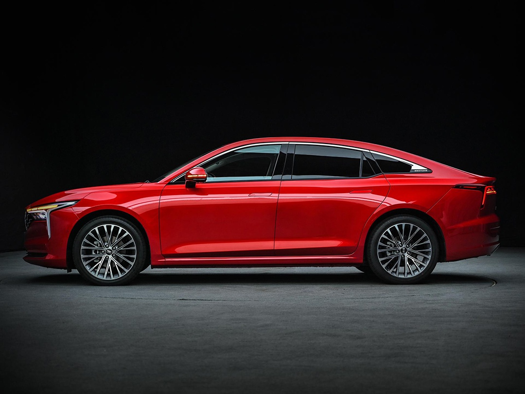 车身侧面的整体造型较为修长,并且新车还配备了常见于纯电动车型上的隐藏式门把手,使新车侧面看上去简洁大气。另外,新车还采用溜背式的车身造型,与修长的车身搭配起来,优雅和运动兼具。