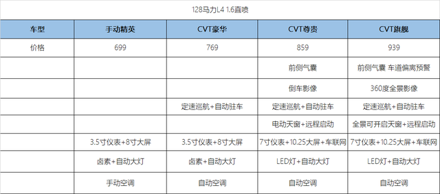 1.6L版本:CVT尊贵型(8.59万元)
