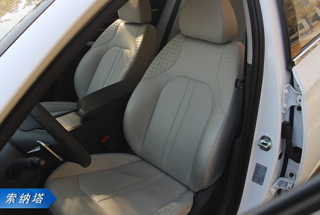 索纳塔前排空间并没有后排那样宽裕,比较紧实。但前排座椅的包裹性和舒适度非常突出。